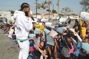Nipsey Hussle at a basketball court refurbishment in October in L.A. (Jerritt Clark/Getty Images)